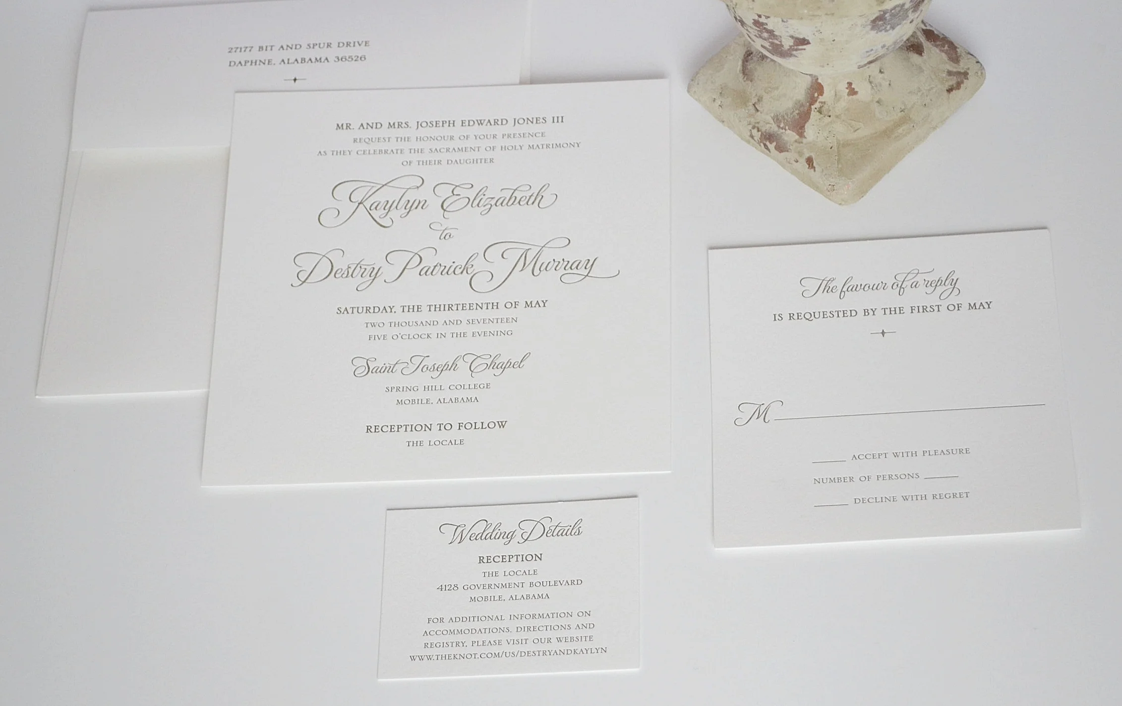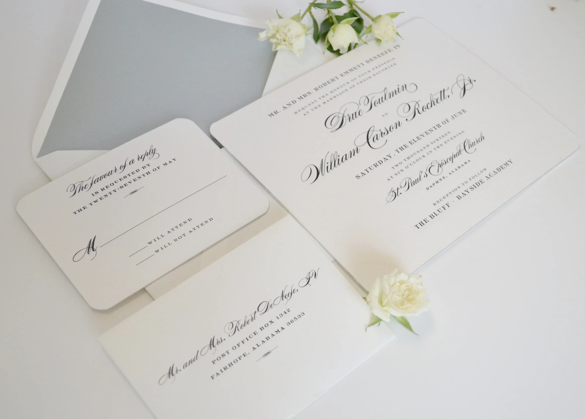 Jenna Laine Weddings can help you create one of a kind stationery, save the dates, and invitations. We work with several stationery lines, which ensures that we have something for everyone in any price range. We also work with a few local vendors to design custom monograms, programs, favor tags, and other paper items to ensure that all your paper products go together seamlessly. Walk ins are welcome, but an appointment is preferred. Contact us at 251-517-9530 or email us at info@jennalaineweddings.coma to set up your appointment. We can also design without an in person consultation, as digital proofs are provided for all items. Let’s create your dream paper suite today!