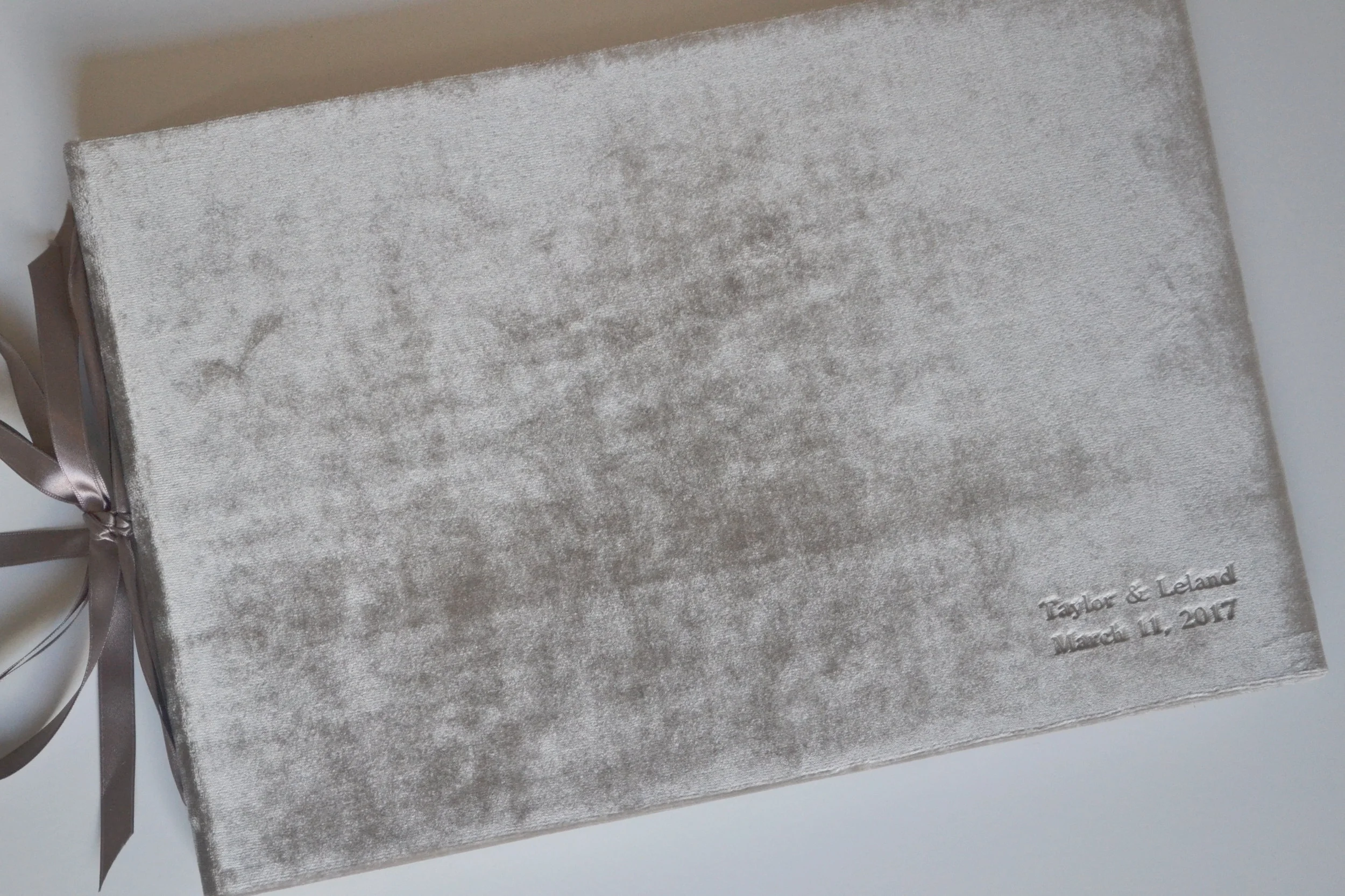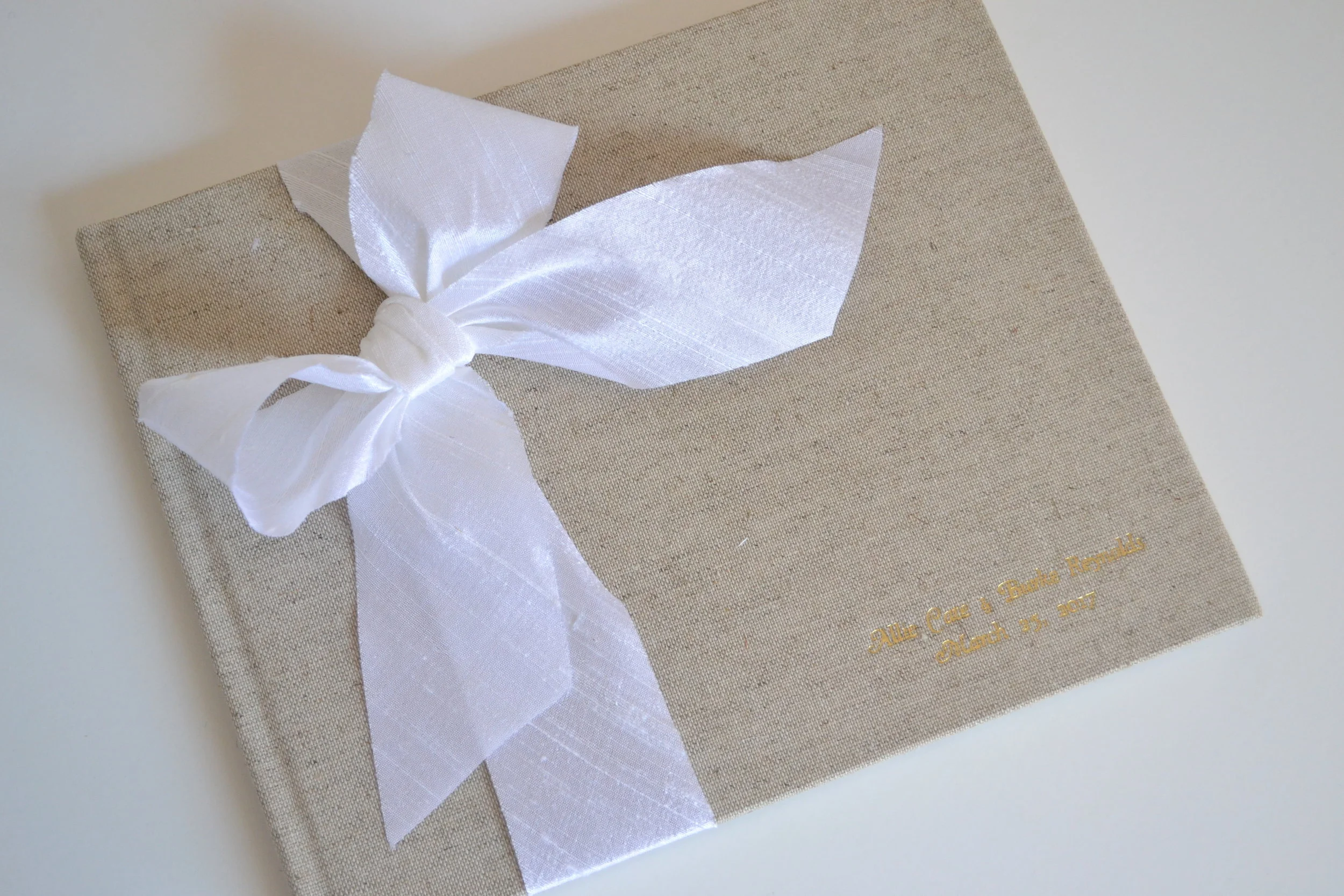 We have several types of guest books in the store and also have customizable options so you can create your very own book to coordinate with your wedding or your home decor. Guest books are great gifts for brides or as a house warming present. We take ordersby email, as well as walk ins. info@jennalaineweddings.com